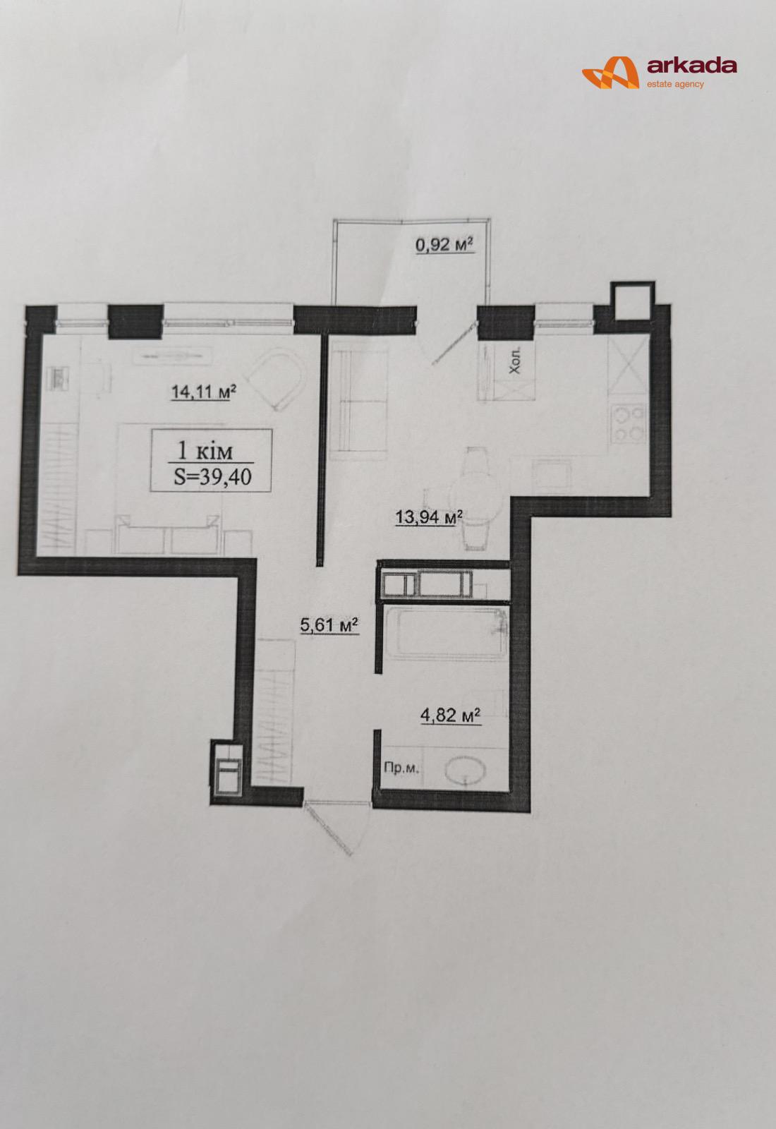 Площа: 39.4м2