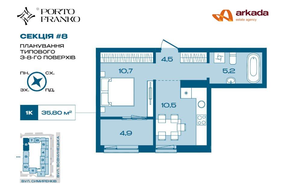 Продається 1 кімнатна квартира в ЖК PORTO FRANKO від БК Вертикаль
